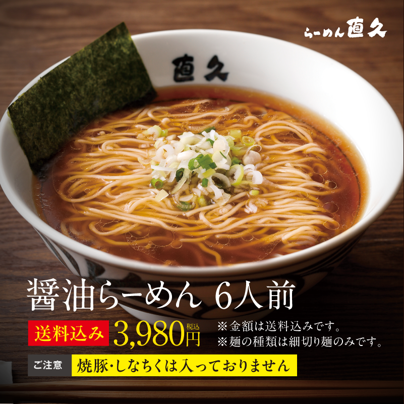 【東京ラーメン】銀座・直久 醤油らーめん6人前(旧しなそば)何度食べても飽きのこない、直久永遠のベストセラー品です。昔なつかしい味と香りをお届けします。